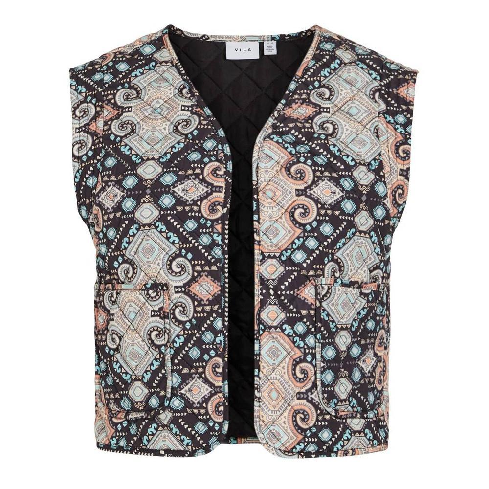 Gilet sans manches pour femme de la marque VilaSans manchesSans fermeture Coloris : Noir/OrangeImprimé ethniqueTissu matelasséComposition : 100% polyester