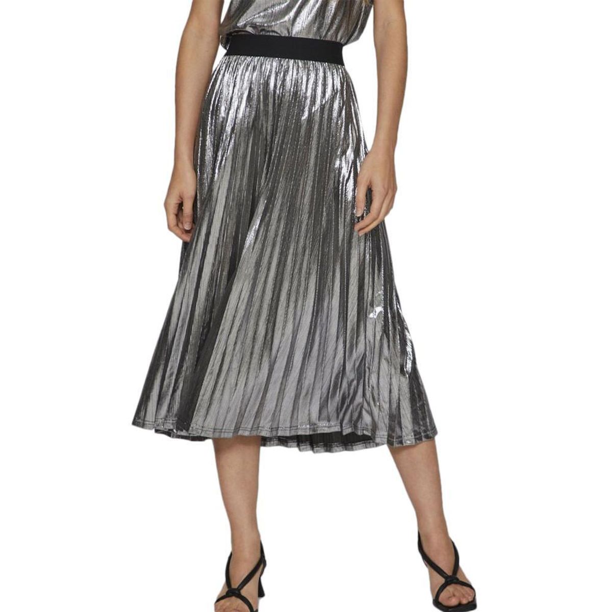 Craquez pour cette jupe de la marque VILA- Jupe midi plissée- Aspect métallisé- Taille élastique- Coupe altique- Composition : 96% Polyester, 4% Élasthanne
