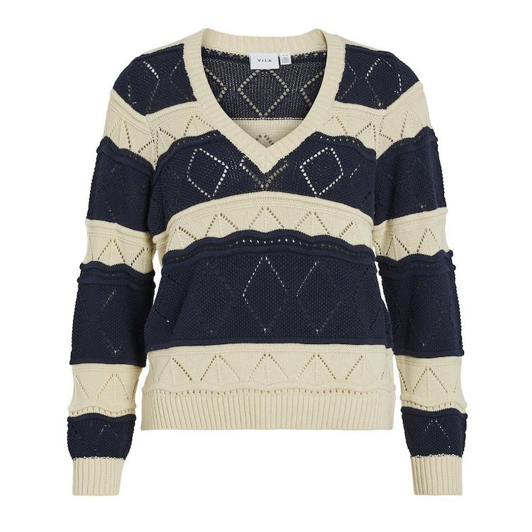 Optez pour ce pull Vila Coloris : Beige, MarineCol V Manches longuesComposition : 100% coton