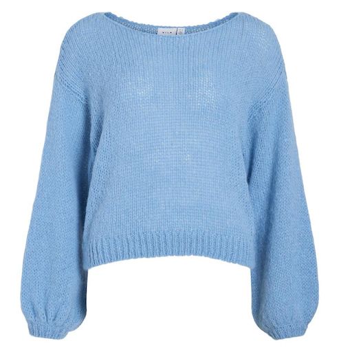 Optez pour ce pull Vila à prix bas !- Coloris : Bleu- Col rond- Manches longues- Composition : 50% polyester, 42% polyester recyclé, 8% laine