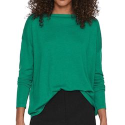 Optez pour ce pull de la marque VILA Coloris : Vert Épaules tombantesCol bateauMaille douce et stretchCoupe ampleComposition : 50% Polyester recyclé, 25% Viscose, 15% Nylon, 10% Polyester