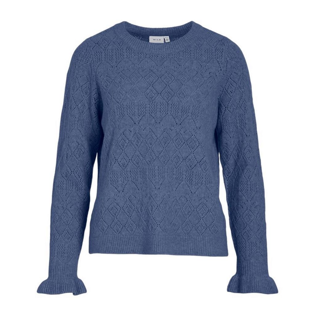 Optez pour ce pull Vila Coloris : BleuCol rondManches longuesComposition : 50% polyester recyclé, 40% polyester, 8% laine, 2% élasthanne