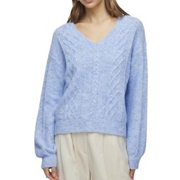 Optez pour ce pull VilaColoris : Bleu Col VManches longuesComposition : 59% Polyester recyclé, 20% Polyester, 12% Nylon, 8% Laine, 1% Élasthanne