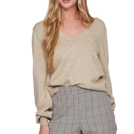 Pull femme de la marque Vila Manches longuesCol V que vous pouvez porter aussi bien devant que derrièreMaille douceColoris : NoirComposition : 50% viscose , 27% nylon , 23% polyester