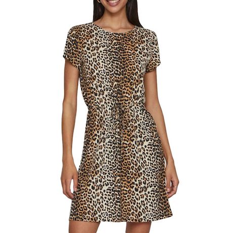 Craquez pour la robe de la marque VILA !- Coloris : beige, marron, noir- Manches courtes- Lien à nouer et cordon de serrage à la taille- Col rond- Tissu stretch doux- Composition : 65% Polyester, 35% Viscose