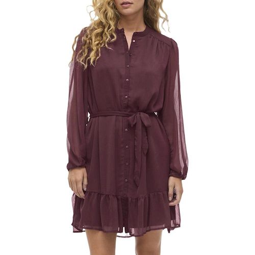 Optez pour cette robe Vila à prix bas !Coloris : BordeauxManches longuesCol rondComposition : 100% Polyester recycléCorsage doublé et superposition semi-transparenteLien amovible à nouer à la taille