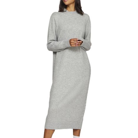 Optez pour cette robe Vila Coloris : GrisManches longuesCol montantComposition : 52 % polyester, 34 % acrylique, 11 % nylon, 3 % élasthanneBords nervurés