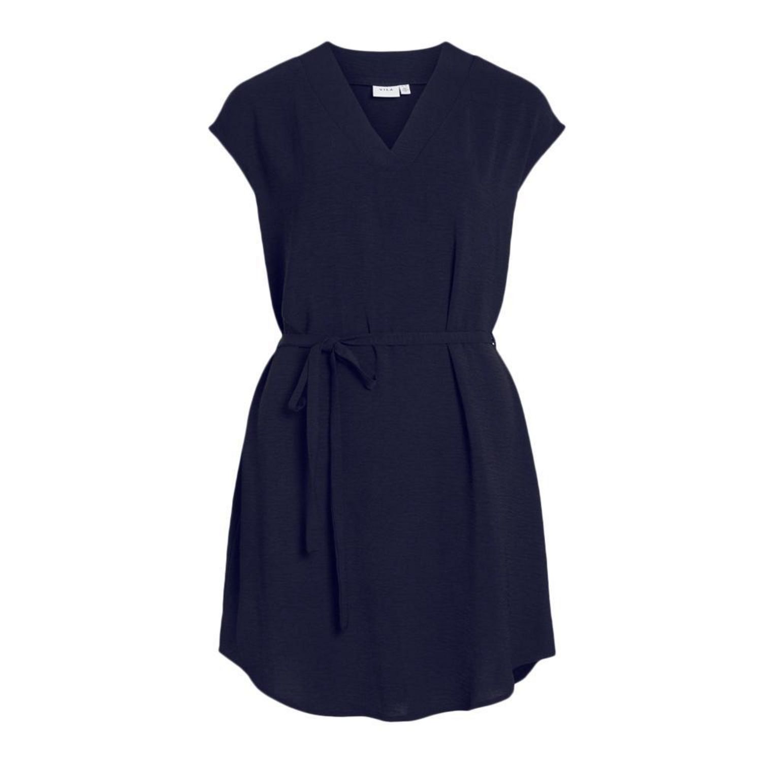 Optez pour cette robe de la marque VilaColoris : MarineManches courtesCol VCeinture à nouerComposition : 50% polyester, 50% polyester recyclé