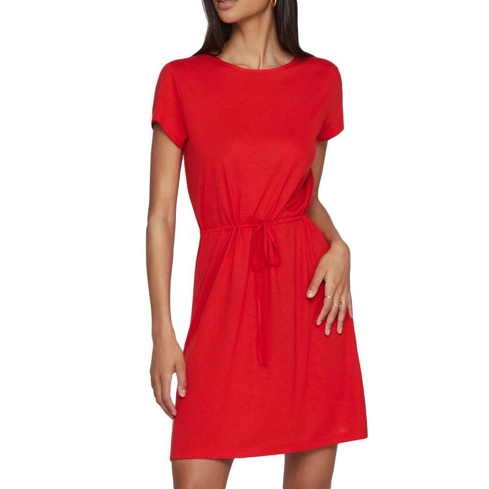 Craquez pour la robe de la marque VILA ! Coloris : Rouge Manches courtes Lien à nouer et cordon de serrage à la taille Col rond Tissu stretch doux Composition : 65% Polyester, 35% Viscose