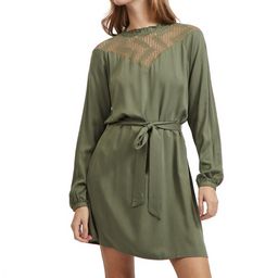 Craquez pour la robe femme de la marque Vila Manches longues Col rond Détail dentelle sur le haut Ouverture en goutte dans le dos Lien à la taille Coloris : Kaki Composition : 100% viscose