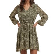 Craquez pour cette robe femme de la marque Vila ! Couleur : Kaki/Beige Coupe droite Longueur courte Robe en voile Décolleté en v Manches longues Motifs imprimés Lien de nouage à la taille Composition : 100% polyester