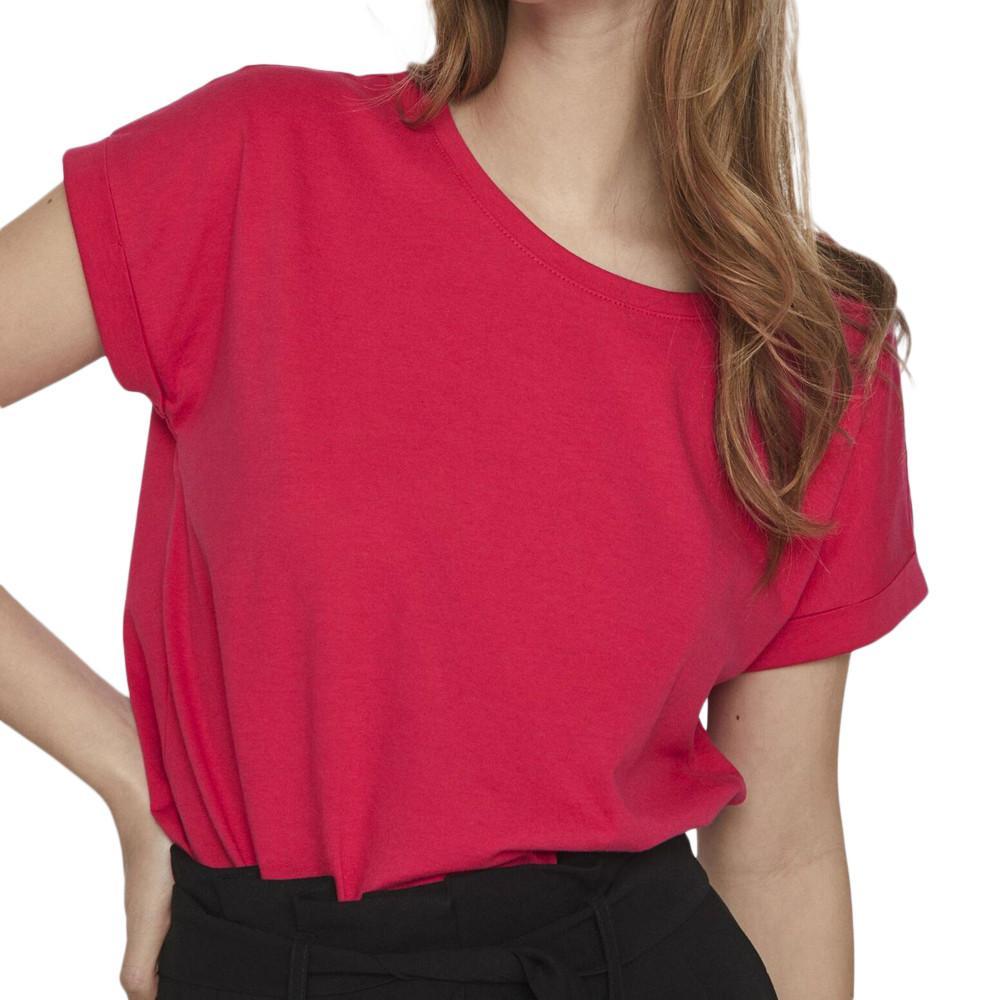 Optez pour ce t-shirt de la marque VILA- Coloris : rose- Manches courtes- Col rond- Composition : 100% coton