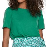 T-shirt pour femme de la marque Vila- Manches courtes- Col rond- Coloris : Vert- Tissu stretch- Composition : 65% polyester , 35% viscose