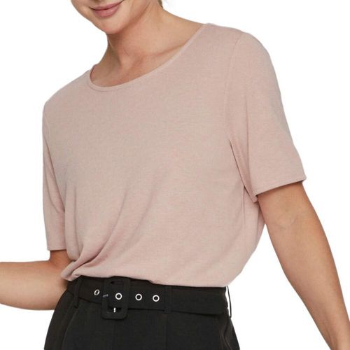 T-shirt pour femme de la marque Vila Manches courtes Col rond Coloris : Rose Tissu stretch Composition : 65% polyester , 35% viscose