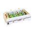Joli petit babyfoot de table, à poser pour des parties de folie ! Babyfoot en bois 12 joueurs et 3 balles en liège, avec un compteur de points pour chaque équipe