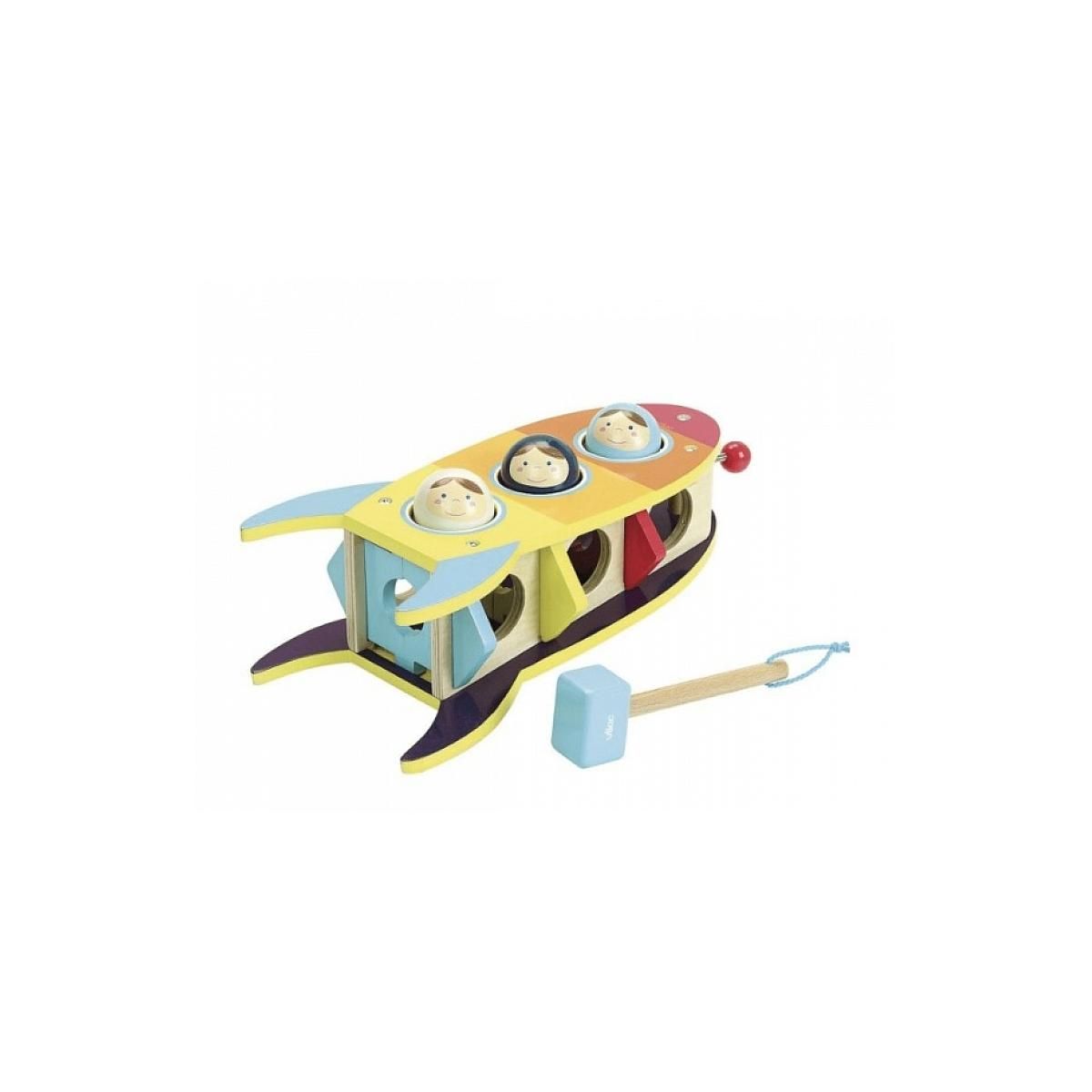 Le Jouet à Marteler Vilac Dans les Etoiles - 3, 2, 1 Décollage ! est un jouet en bois qui favorise la motricité des petits. Positionner chaque astronaute près de son siège et utiliser le maillet pour lui permettre d'entrer dans la fusée, telle est la mission que devra remplir votre petit explorateur en herbe. Marque: Vilac. Age: Dès 18 mois