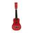 Véritable guitare en bois 6 cordes. Hauteur 52 cm. Couleur rouge.