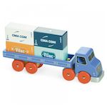 Camion porte-containers en bois aimanté. Compatible avec la grande grue de chantier. Ce camion transportant 4 conteneurs aimantés peut être assorti à la grue de docker de la gamme Vilacity.