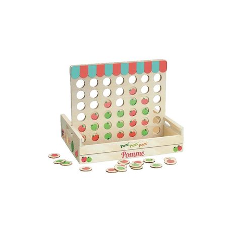 Découvrez le jeu de société 'Pom Pom Pom Pomme' de la marque Vila, une variante ludique et compétitive du célèbre Puissance 4. Ce jeu en bois coloré et au style vintage invite les enfants dès 5 ans à développer leur logique et leur stratégie en alignant quatre pommes de la même couleur. Conçu pour d