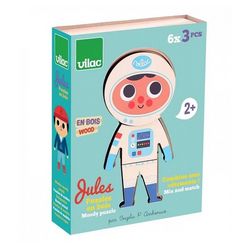 Comment Jules va t'il s'habiller ? Tenue de sport ? De marin ou déguisé en tigre ? Et si on faisait un mélange de toutes les tenues? Avec les 6 tenues différentes, les possibilités d'associations sont nombreuses pour des résultats parfois inattendus !!! Ces puzzles d'éveil en bois sont un formidable support pour stimuler la motricité, l'observation et la créativité de votre petit.