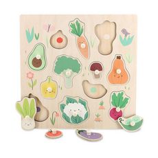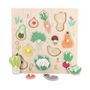 Quel plaisir d'aller flâner au jardin et d'observer tous ces légumes colorés ! Grâce à ce magnifique encastrement en bois, dessiné avec douceur par Sarah Betz - Cubeely, faites découvrir à votre enfant la carotte, le radis, le chou-fleur et tous leurs amis. Réflexion, observation, habilité seront st