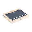 Comme une vraie école ! Illustré par Ingela P. Arrhenius, ce petit pupitre avec son look à l ancienne regorge de surprises :47 lettres et 23 chiffres en bois, 50 cartes modèles pour essayer de reconstituer des mots en français et en anglais et 30 car