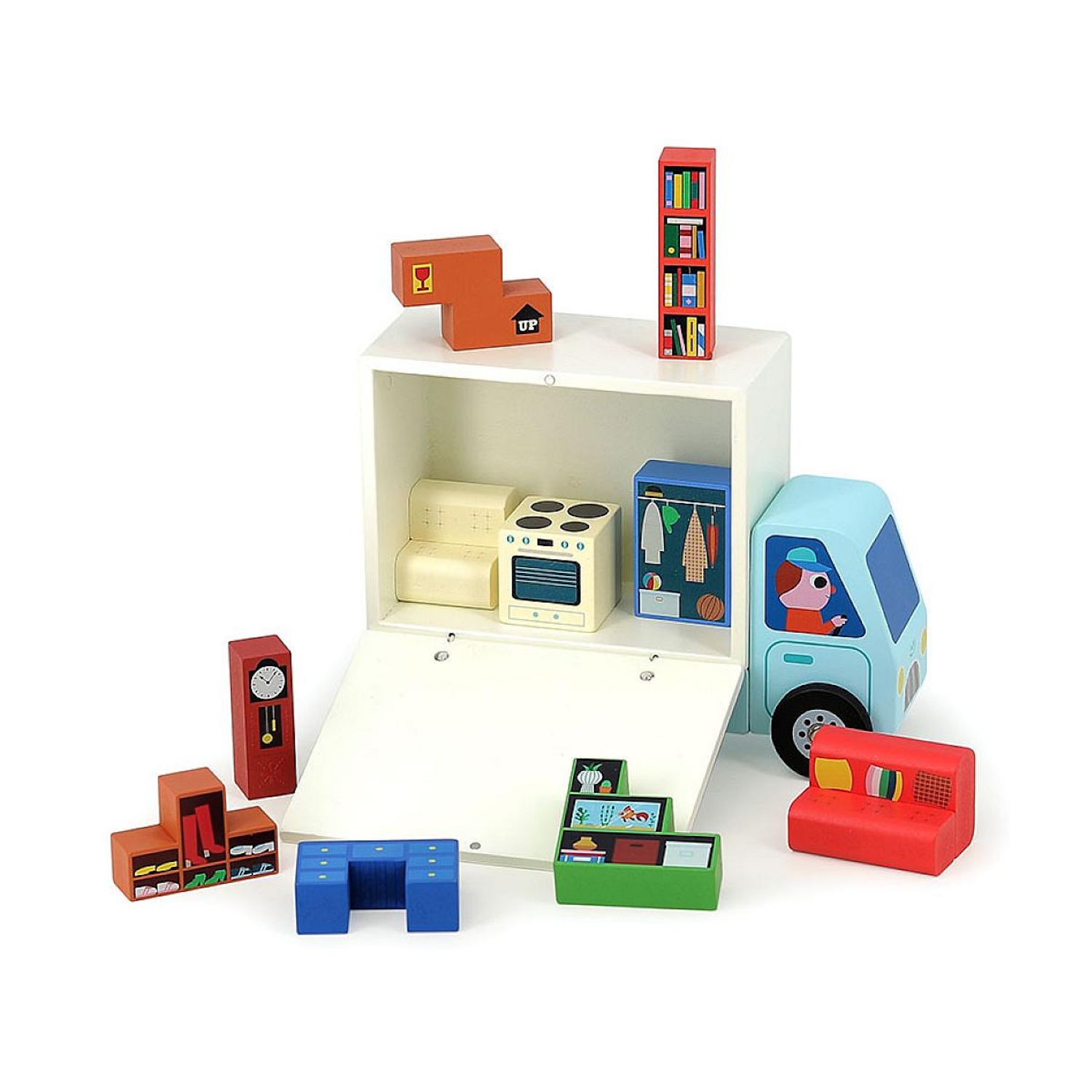 Notre jeu de logique Pack It Right en bois, illustré par Ingela P.Arrhenius, invite votre enfant dès 5 ans à organiser les meubles d'une maison dans un camion de déménagement. Un concept amusant qui va stimuler sa logique, sa motricité fine, et son sens de l'organisation. Le camion et les meubles