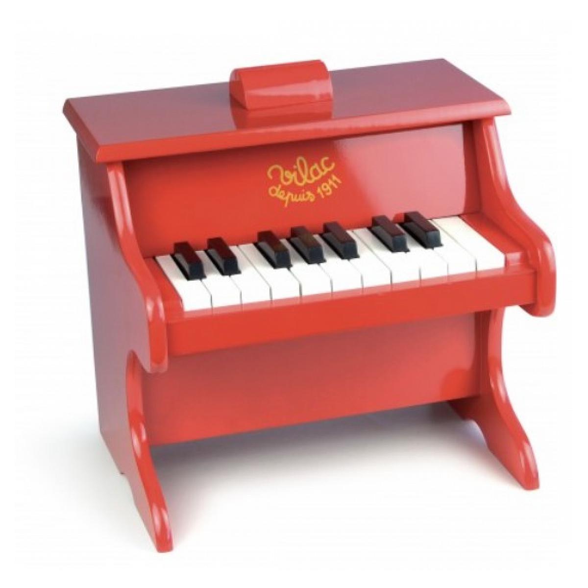 Un joli piano rouge en bois de dix-huit touches livré avec dix partitions pour apprendre à votre enfant à imiter quelques morceaux de musique.