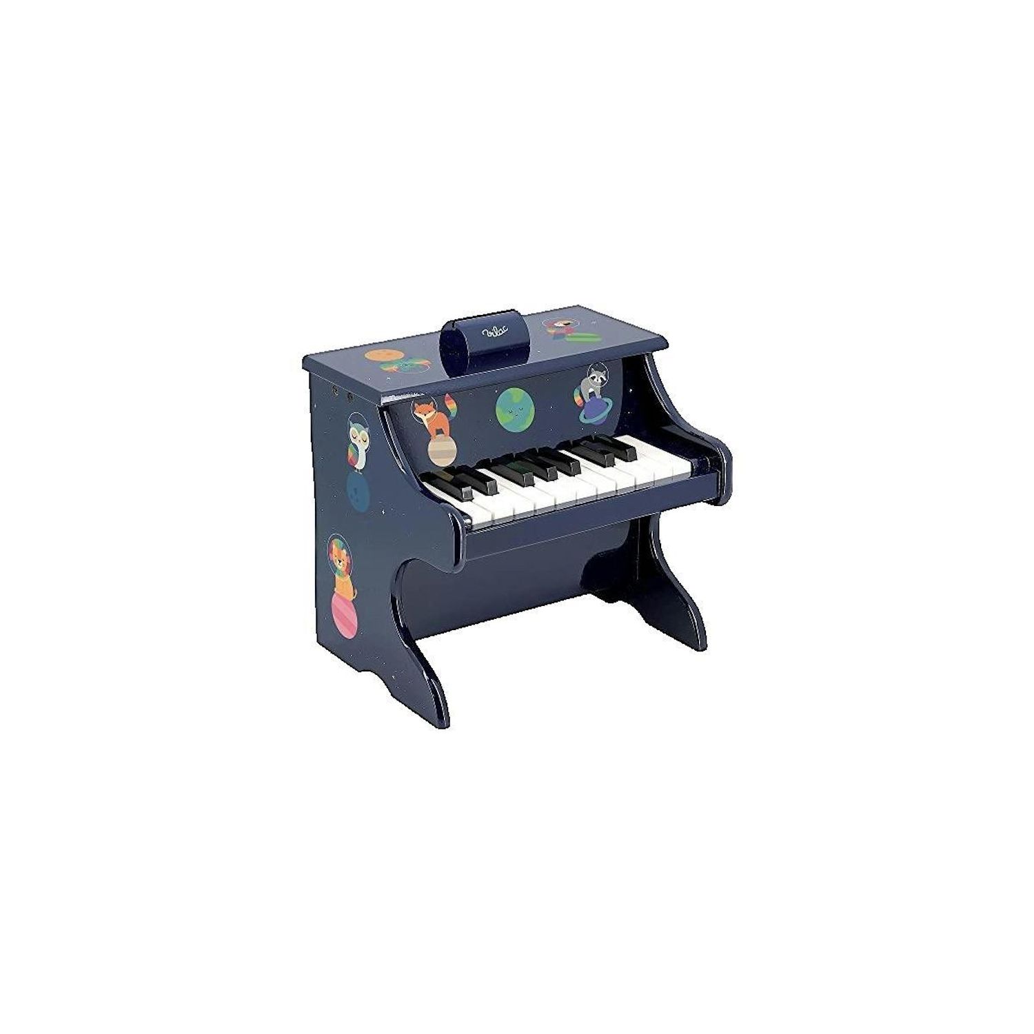 Le Piano Arc-en-ciel de la marque Vila est un jouet musical en bois conçu pour initier les enfants à la musique dès l'âge de 3 ans. Créé par Andy Westface, ce piano coloré dispose de 18 touches et est accompagné de dix partitions adaptées aux enfants de 3 à 6 ans. Ce piano-jouet, avec des dimensions