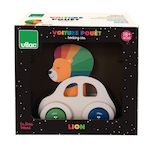 Montez à bord de cette voiture toute ronde, illustrée par Andy Westface. Craquez pour ce jouet d'éveil qui va accompagner votre enfant dans le développement de son imagination et de sa motricité fine. Au volant de ce bolide, un adorable lion et sa crinière colorée. Et surprise ! Lorsque votre enfant