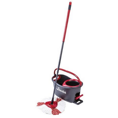 Vileda 1052218 Le Balai lave sol avec seau Easy Wring & Clean Turbo Vileda 1052218 est un set complet qui permet un nettoyage rapide et en profondeur de tous vos sols. Kit de nettoyage comprenant un seau à pédale nouvelle génération ainsi qu'un balai à franges et deux têtes en microfibre et franges