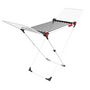 Avec 19 mètres d'espace d'étendage, vous disposez d'assez de place pour sécher tous vos vêtements, qu'il s'agisse de linge volumineux ou d'articles plus petits, comme les chaussettes et sous-vêtements. Le cintre central est parfait pour les pièces plus grandes, tandis qu'un cintre supplémentaire permet de sécher les petits articles sans pinces. Facile à manipuler, il se plie rapidement avec une seule main et peut être rangé dans des espaces réduits, grâce à ses roues intégrées pour un déplacement facile, même lorsqu'il est chargé de linge.