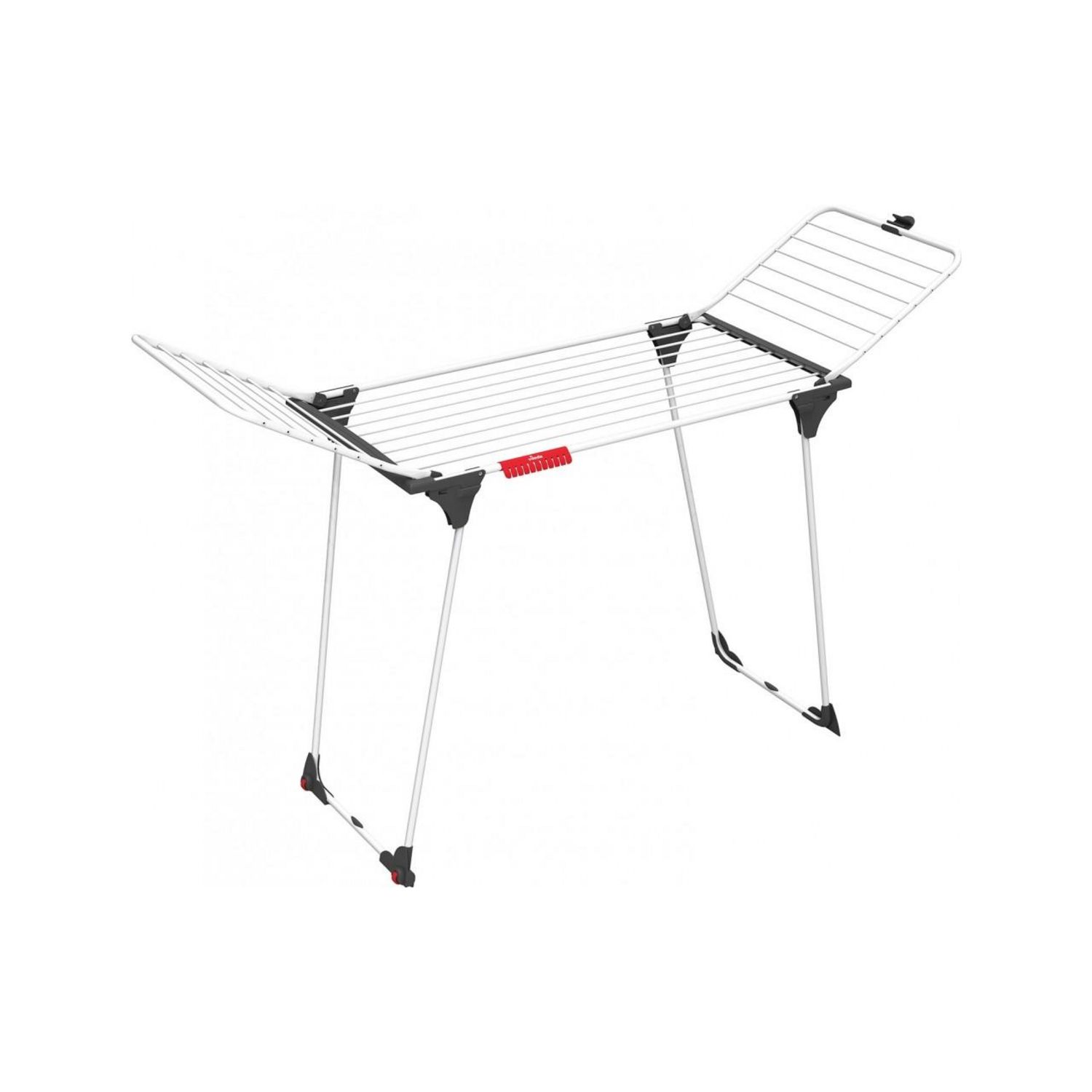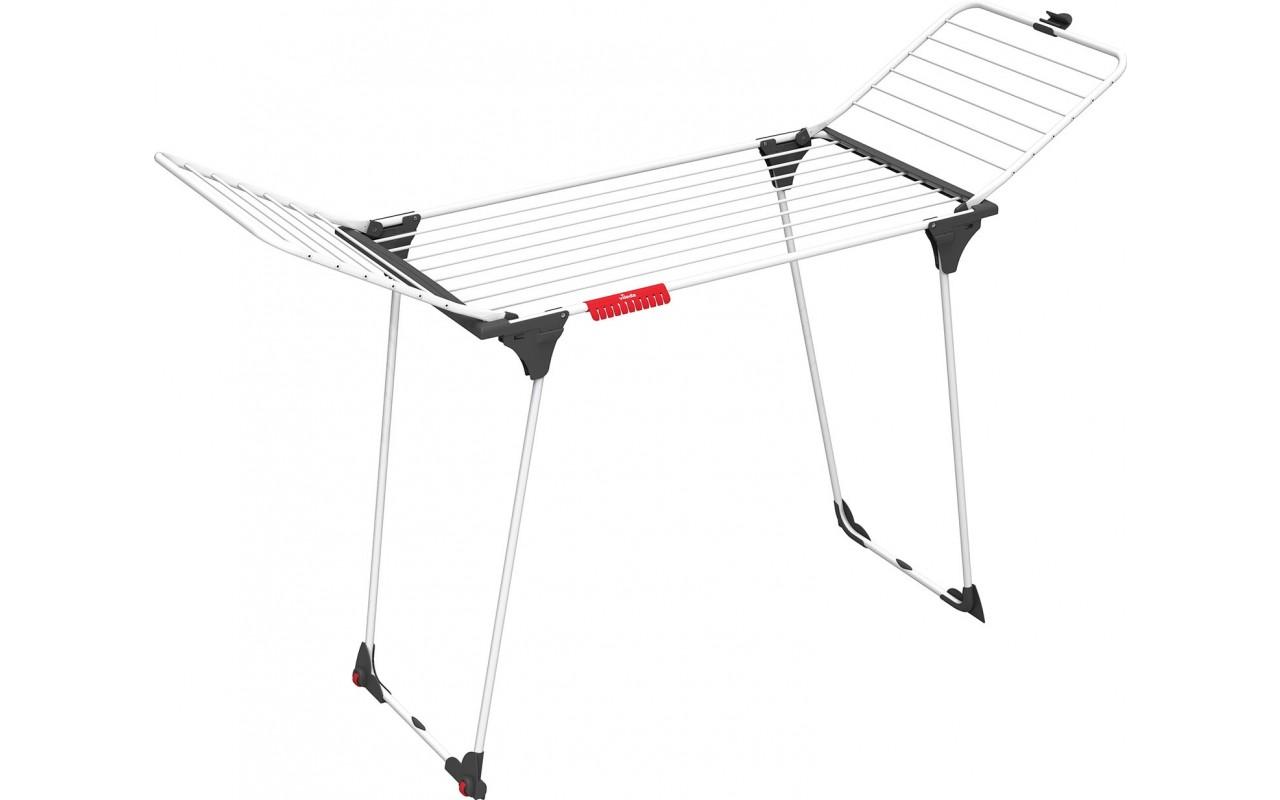 Vileda 157248 Séchoir à linge King Vileda 157248 pratique, malin et extra stable.Offrant une capacité de séchage de 20m, il vous offre suffisamment d'espace pour étendre 2 machines.Grâce à ses fils épais en aluminium, il laisse peu de plis sur votre linge pendant le séchage, raccourcissant ainsi le temps de repassage.Les pieds de table en acier vous apporteront plus de stabilité et de résistance, leur joint spécifique empêchera toute fermeture accidentelle même lorsque vous le déplacez.Un espace de séchage supplémentaire est disponible grâce au support à petites pièces , qui vous permet de suspendre vos chaussettes et sous-vêtements facilement sans besoin de pince.Facile à refermer, il peut être remis à plat pour gagner de la place, grâce à son système de blocage des ailes qui les retient en place lorsqu'elles sont repliées.