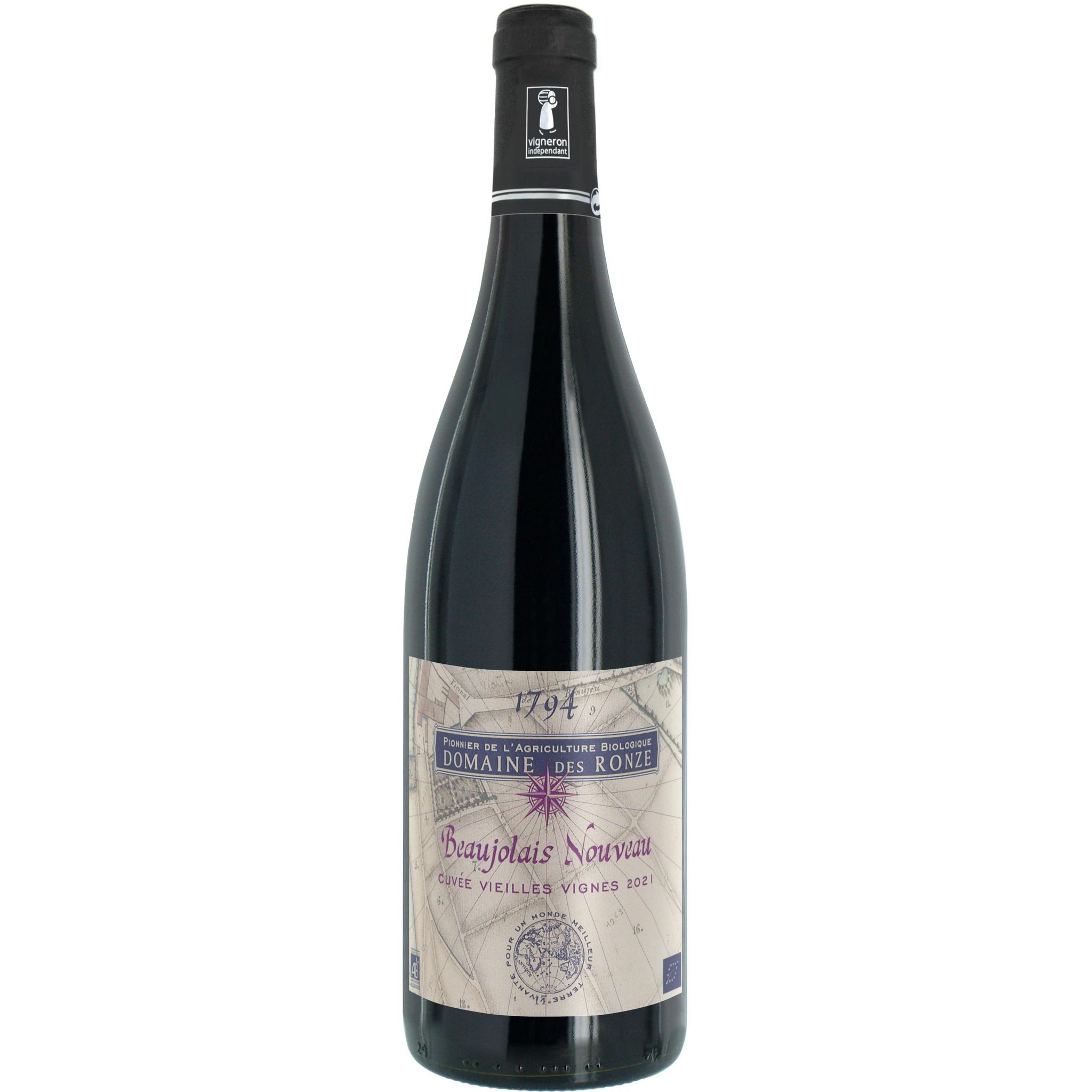 Vin rouge AOP Beaujolais nouveau bio Domaine des Ronze cuvée vieilles vignes 2021