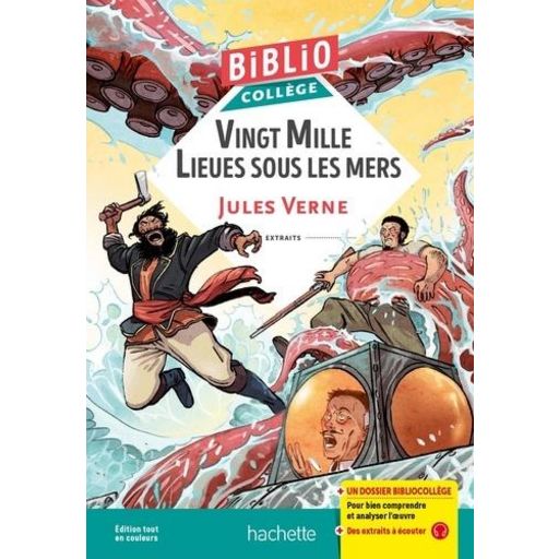 En 1866, un monstre marin d'une force prodigieuse sème la peur en attaquant des bateaux. Une expédition est alors organisée pour le retrouver et le tuer. Le professeur de sciences Pierre Aronnax, son fidèle domestique Conseil, et Ned Land, un harponneur canadien, y prennent part, sans se douter de l'incroyable découverte qu'ils vont faire et des aventures que leur réserve l'énigmatique capitaine Nemo... Toutes les clés pour comprendre l'oeuvre et le thème associé Avant de lire l'oeuvre - L'essentiel sur l'auteur - Le contexte d'écriture de l'oeuvre Au fil de l'oeuvre - Des questionnaires sur les passages clés : compréhension et étude de la langue - L'enregistrement audio d'extraits lus par un comédien Le dossier BIBLIOCOLLEGE - L'essentiel sur l'oeuvre - La structure de l'oeuvre - Les personnages de l'oeuvre - Le genre de l'oeuvre - L'oeuvre dans l'histoire des arts - Des lms, des documents et des livres associés à l'oeuvre UN GROUPEMENT DE TEXTES Thème : Le voyage et l'aventure L'inconnu : lieu de nos peurs, désirs et secret