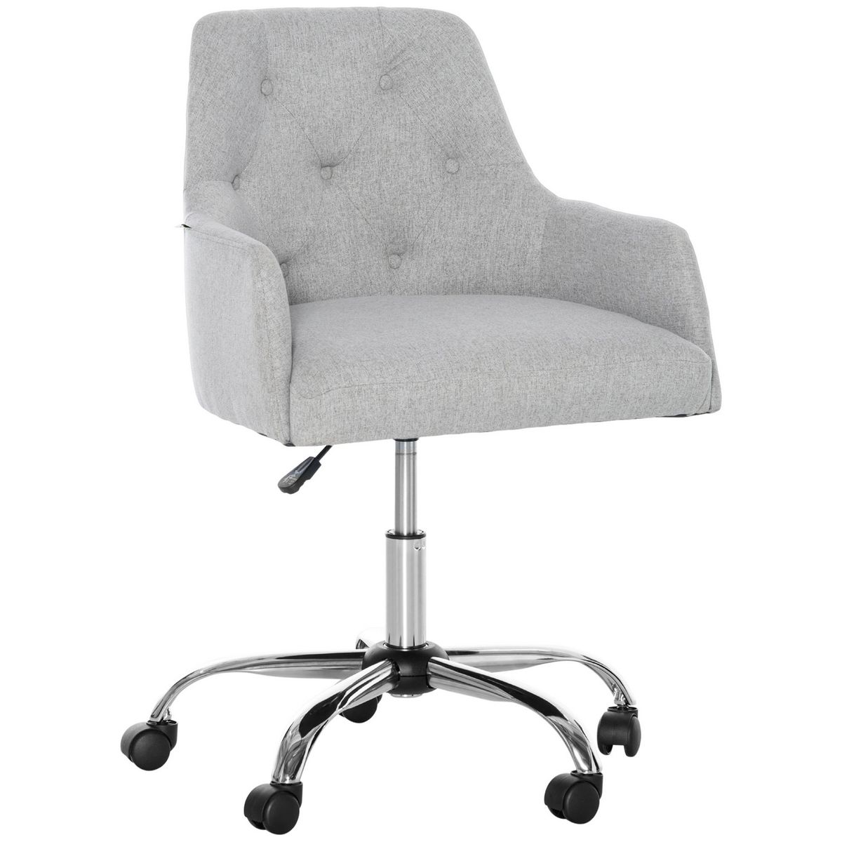 Chaise de bureau design Chesterfield capitonné hauteur réglable pivotant 360° piètement chromé tissu gris