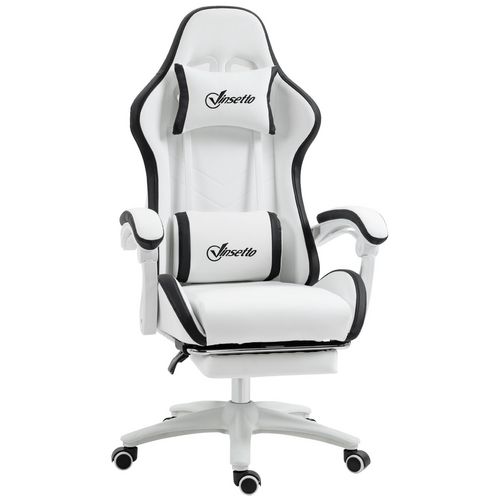 Découvrez le confort avec la chaise de gaming Vinsetto : revêtement synthétique élégant avec bordure colorée, entièrement rembourrée, coussins tête et lombaires, dossier inclinable jusqu'à 135°, repose-pieds extensible. Hauteur ajustable de 45,5 cm à 53,5 cm pour une position optimale.Caractéristiqu