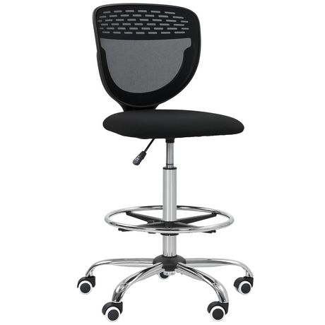 Optez pour la chaise de bureau haute Vinsetto, idéale pour les surfaces élevées avec une hauteur d'assise ajustable de 68 à 88 cm. Assise rembourrée et dossier haut assurent confort et soutien, tandis que le design sans accoudoirs et le siège pivotant maximisent la liberté de mouvement. Inclut une b