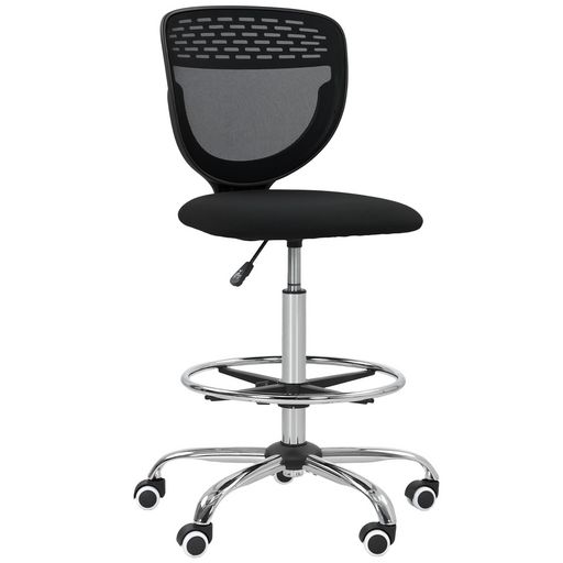 Optez pour la chaise de bureau haute Vinsetto, idéale pour les surfaces élevées avec une hauteur d'assise ajustable de 68 à 88 cm. Assise rembourrée et dossier haut assurent confort et soutien, tandis que le design sans accoudoirs et le siège pivotant maximisent la liberté de mouvement. Inclut une barre de repose-pieds ajustable.