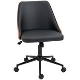 Cette jolie chaise de bureau est un objet déco à part entière ! L'acier noir du piètement se marie parfaitement avec le bois foncé de la structure et le noir de l'assise. Ce mariage subtile de matériaux fait de cette chaise une assise élégante, originale qui accompagnera harmonieusement tous les sty