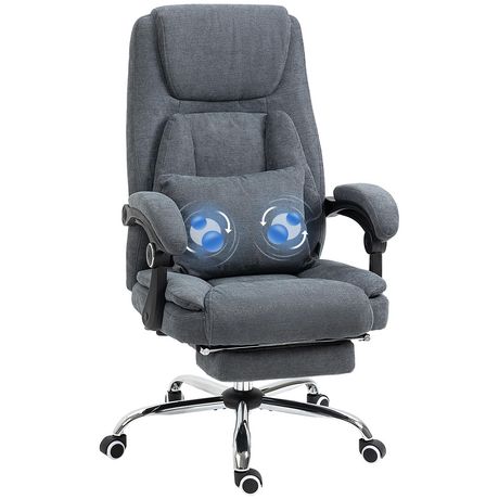 Fauteuil de bureau direction massant par pétrissage - réglable, inclinable, repose-pied rétractable - tissu gris