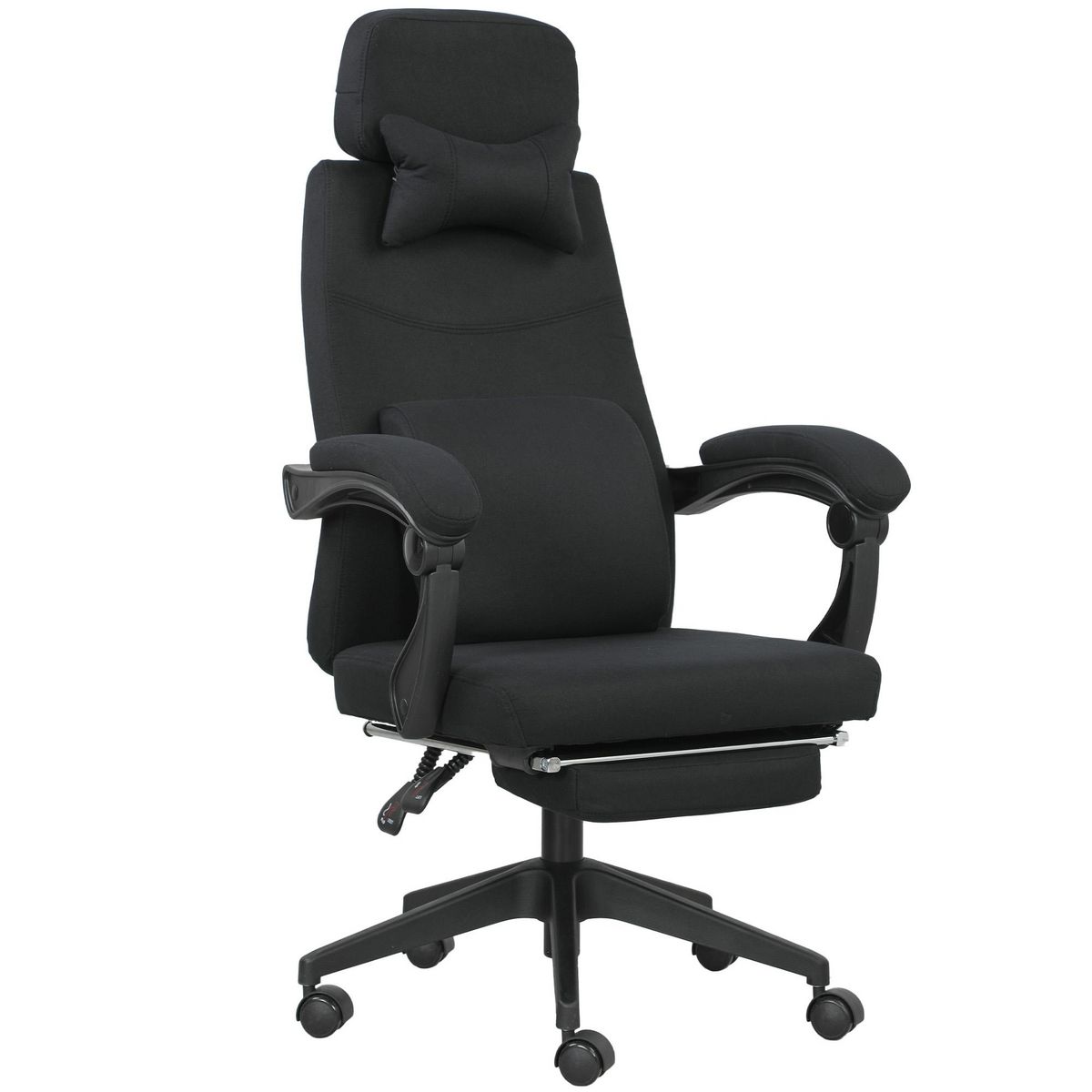 Fauteuil de bureau manager grand confort dossier réglable repose-pied coussin lombaire roulettes 360° lin 62L x 68P x 127H cm noir