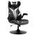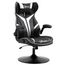Fauteuil gaming base ronde métal pivotante 360° hauteur réglable tétière accoudoirs relevables PVC blanc noir