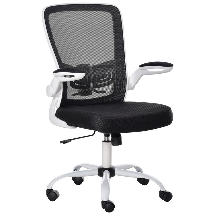 Vinsetto Chaise de bureau ergonomique hauteur réglable pivotante 360° accoudoirs relevables tissu maille bicolore noir blanc
