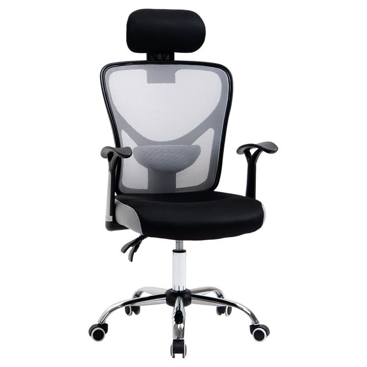 Vinsetto Chaise de bureau manager grand confort réglable dossier inclinable piètement chromé tissu maille polyester gris noir