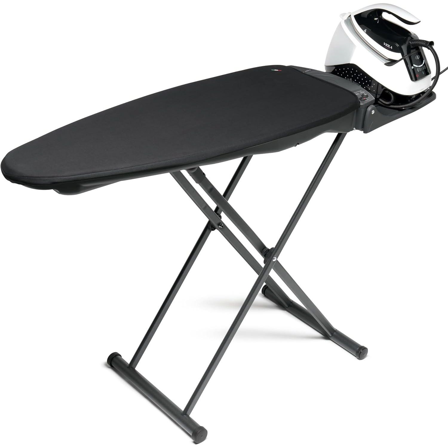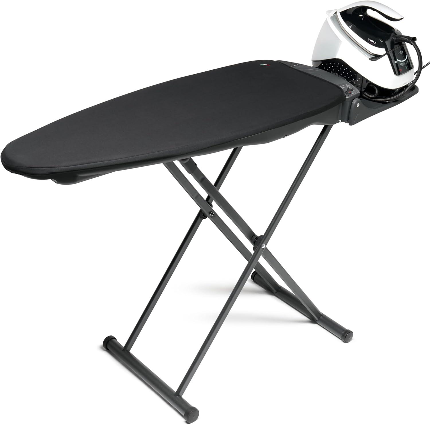 La planche à repasser multifonctionnelle de VIOLA s'inspire des équipements de repassage professionnels et reprend leurs principales caractéristiques à la maison : entièrement fabriqué en Italie avec des matériaux de première qualité, robustesse et solidité, plateau chauffant en aluminium, fonction d'aspiration, fonction de soufflerie et bien d'autres choses encore. REMARQUE : il est à noter que le fer à repasser visible sur la photo n'est pas inclus dans la vente, mais est présent uniquement à des fins de démonstration pour fournir une référence visuelle sur la dimension de la planche. L'objet en vente est exclusivement la planche à repasser VIOLA modèle VOILA X.