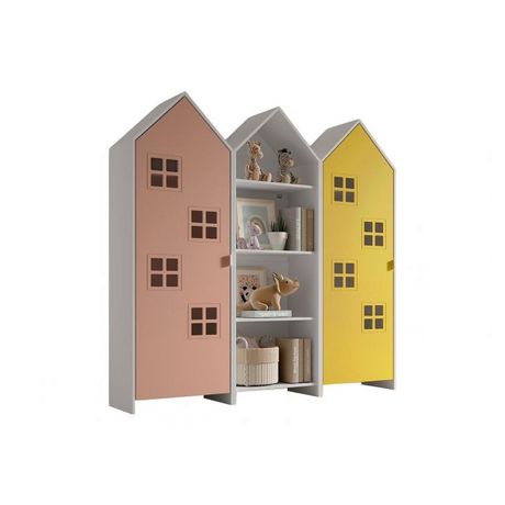 Cette combinaison se compose de 3 armoires : 1 armoire ouverte CASAMI, 1 armoire CASAMI BRUGES avec une porte en Comfy Pink et 1 armoire avec une porte en More Yellow. Les armoires de la collection CASAMI, en forme de cabanes de plage, apportent immédiatement une touche ludique et colorée à n'import