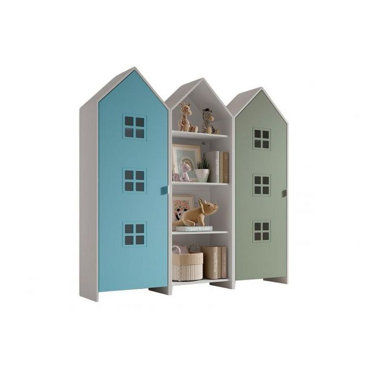 Cette combinaison se compose de 3 armoires : 1 armoire ouverte CASAMI, 1 armoire CASAMI BRUGES avec une porte en Entangled Green et 1 armoire avec une porte en Blue Ballet. Les armoires de la collection CASAMI, en forme de cabanes de plage, apportent immédiatement une touche ludique et colorée à n'importe quelle chambre d'enfant et offrent également l'espace de rangement nécessaire pour les vêtements, les jouets et de nombreux autres objets.