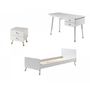 Lit L : 203,6 x H : 73,5 x P : 95 cm Chevet L : 43,2 x H : 45,2 x P : 40 cm Bureau L : 125 x H : 75 x P : 60 cm MDF Blanc satiné