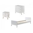 Lit L : 203,6 x H : 73,5 x P : 95 cm Chevet L : 43,2 x H : 45,2 x P : 40 cm Commode 3 tiroirs 100 x 57 x H 89 cm MDF Blanc satiné